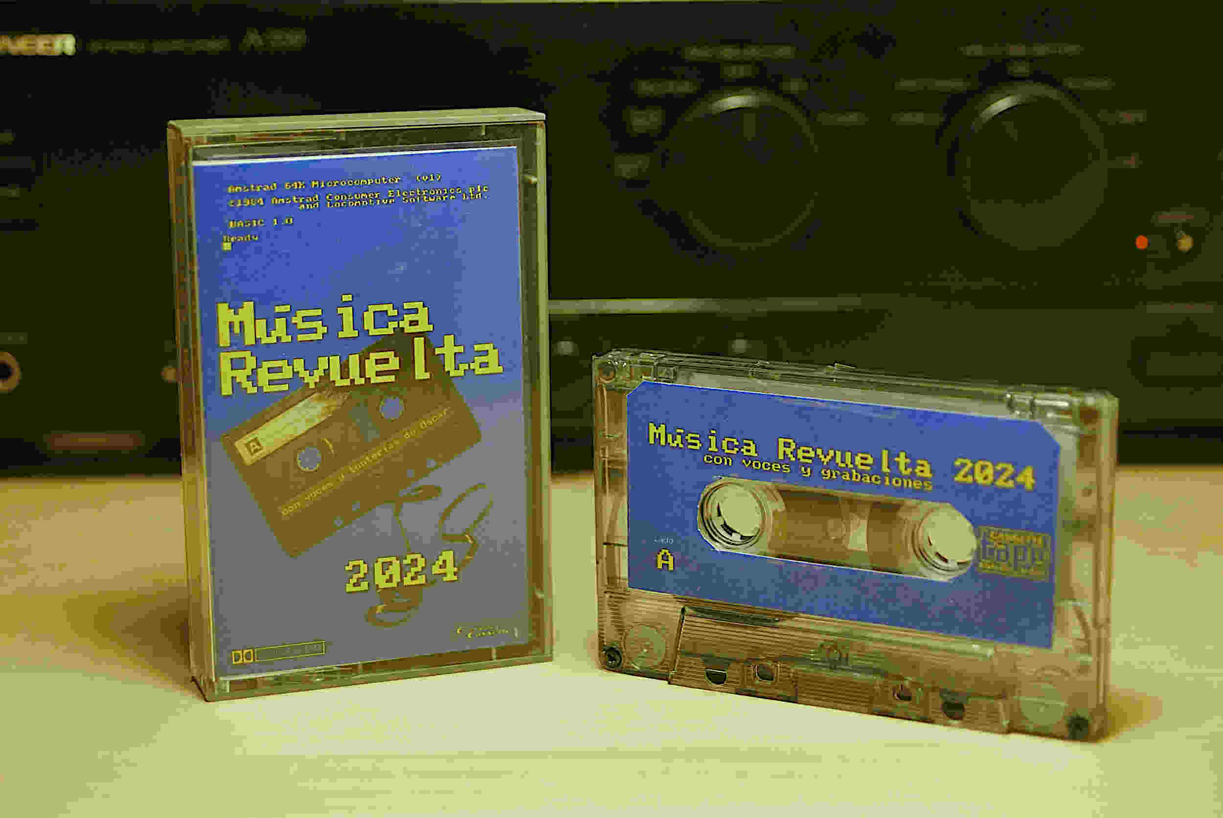 Recopilación “Música Revuelta 2024” es el nombre que ponía a los “mixtapes”. En aquella época el inglés para mi era como chino (aun lo es) y llamaba a mis colecciones música revuelta. Grababa muy pocas cintas al año, eran muy caras para un niño de 9 años y muchas veces regrababa encima. La imagen de portada es un homenaje al Amstrad CPC igual que la tipografía.